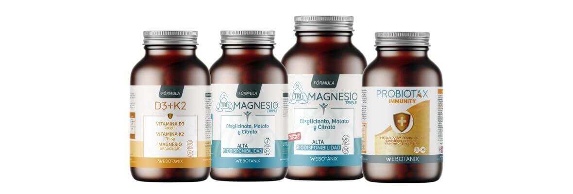 En Webotanix, podemos ayudar a complementar la alimentación para mejorar el sistema inmune con Probiotax Immunity, Vitamina D3+K2+Magnesio