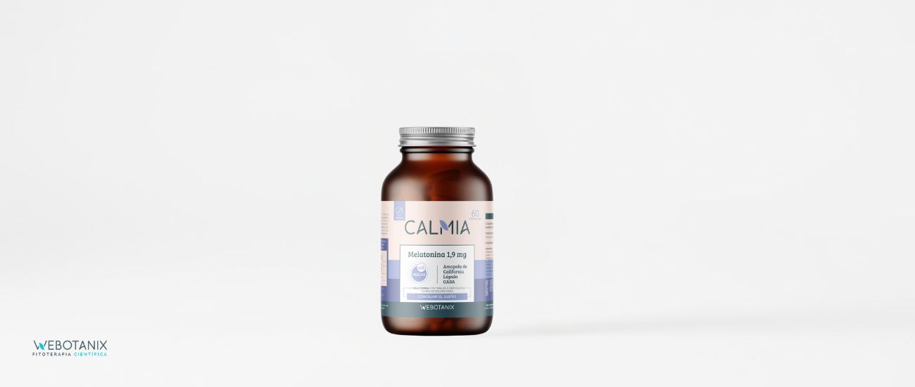 El complemento alimenticio Calmia Noche está formulado a base de melatonina, proteína de cáñamo, GABA y extractos vegetales que favorecen un descanso más profundo y, por ello, ayuda a conciliar el sueño.