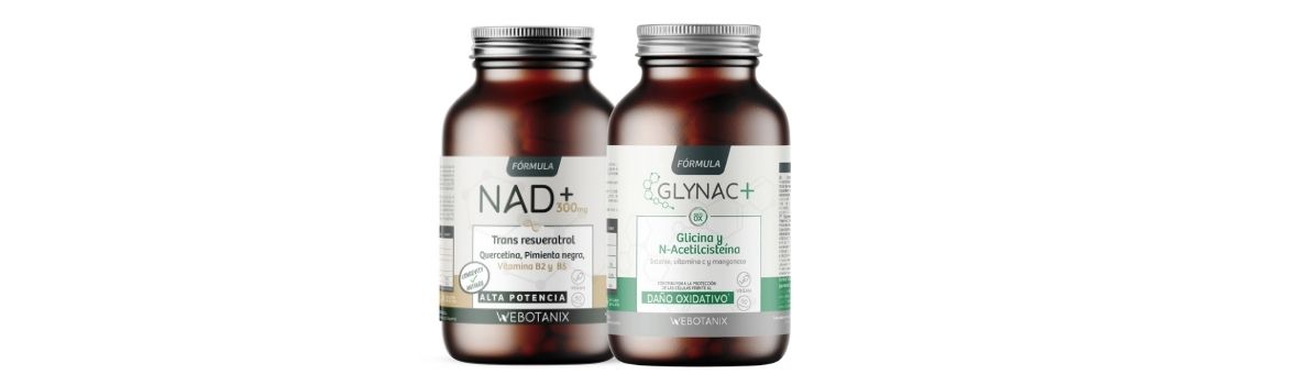 En Webotanix tenemos dos complementos que nos pueden ayudar a aumentar nuestra longevidad pero aumentando también la calidad de vida. Estos dos complementos son el NAD+ y el GlyNAC+.